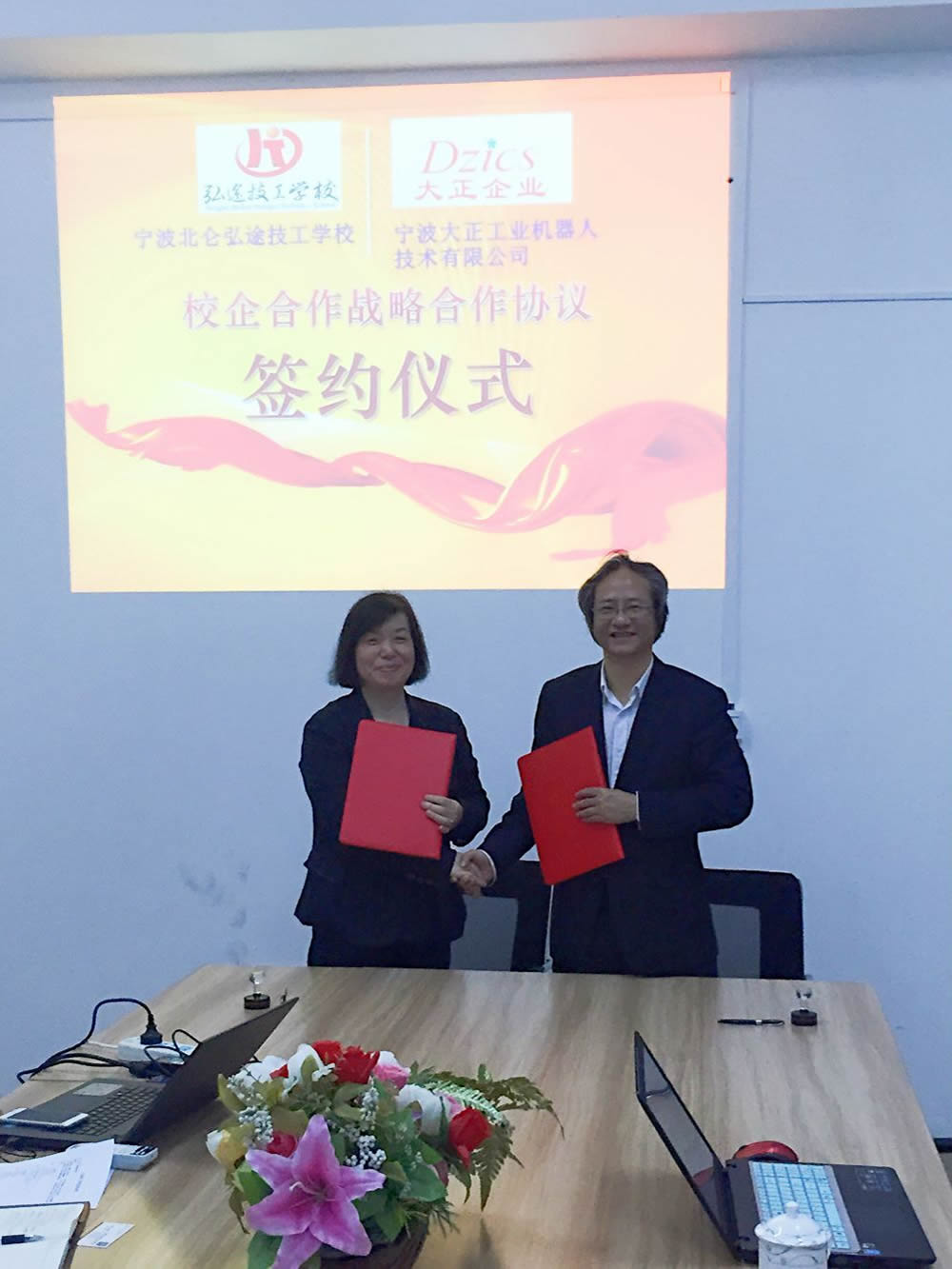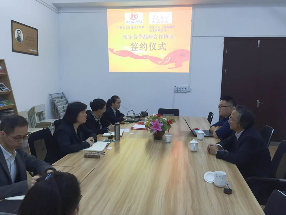 宁波大正工业机器人技术有限公司与北仑弘途技工学校签订校企合作协议